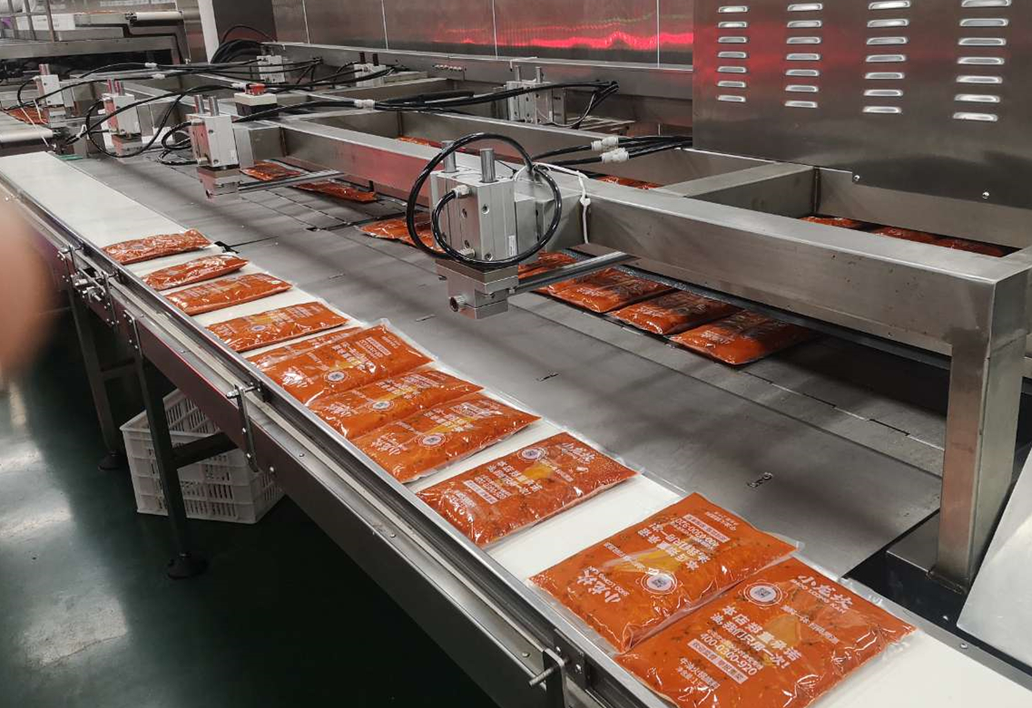 智能控制系統(tǒng)輔助產(chǎn)品炒制,控制產(chǎn)品生產(chǎn)工藝,實(shí)現(xiàn)高效率運(yùn)輸。牛油類底料炒制后,采用藥品級(jí)全管道式運(yùn)輸和灌裝,利用金屬探測(cè)儀檢測(cè)異物,確保產(chǎn)品的衛(wèi)生安全。